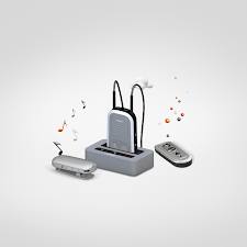 Σύστημα ασύρματης μεταφοράς ηχητικών δεδομένων το οποίο συνδέεται συσκευές παράγωγης ήχων και σας επιτρέπει να ρυθμίζετε την ένταση χωρίς να ενοχλείτε τους γύρο σας. Διατίθεται για συγκεκριμένη μάρκα ακουστικών